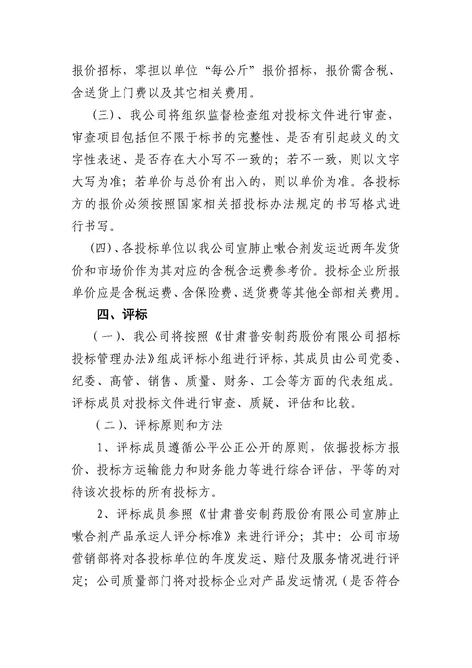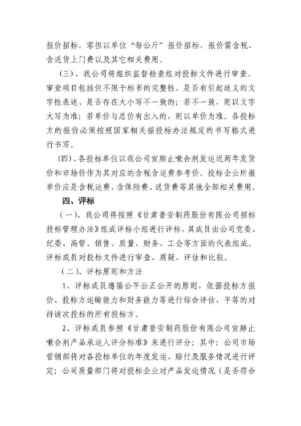 甘肅普安制藥股份有限公司宣肺止嗽合劑2022年承運人招標公告