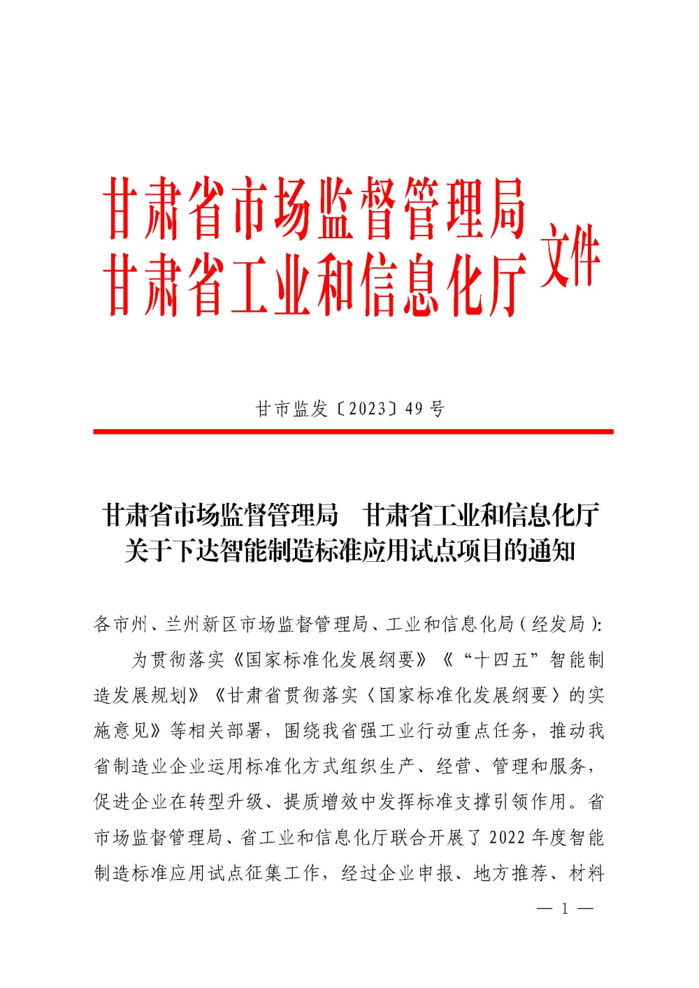 近日,甘肅省市場監(jiān)督管理局、甘肅省工業(yè)和信息化廳公布了省級智能制造標(biāo)準(zhǔn)應(yīng)用試點(diǎn)項(xiàng)目名單。