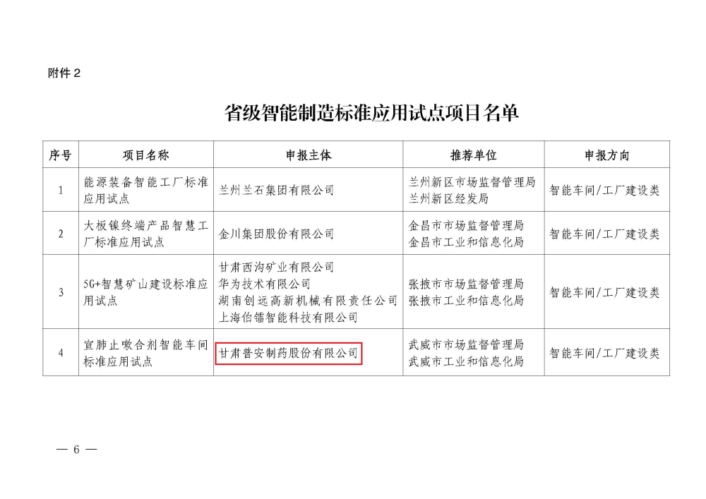 “三抓三促”踐行中 ᅵ 【喜報(bào)】甘肅藥業(yè)集團(tuán)普安制藥入選省級智能制造標(biāo)準(zhǔn)應(yīng)用試點(diǎn)項(xiàng)目名單