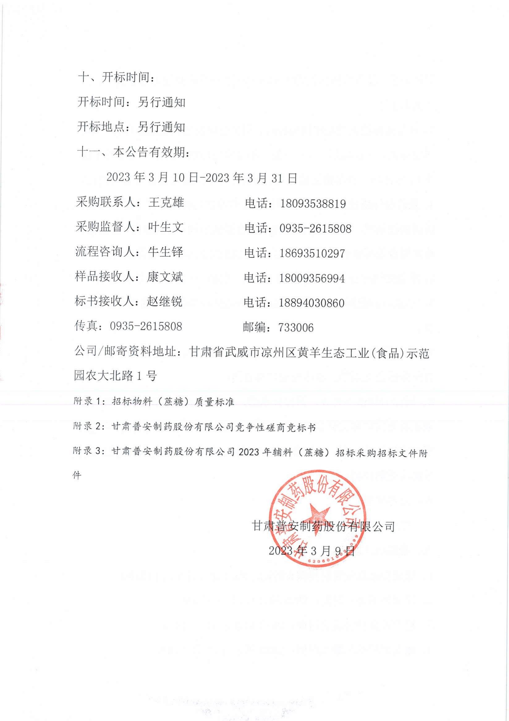 具體內容詳見附件:甘肅普安制藥股份有限公司2023年宣肺止嗽合劑物料(蔗糖)采購競爭性磋商公告