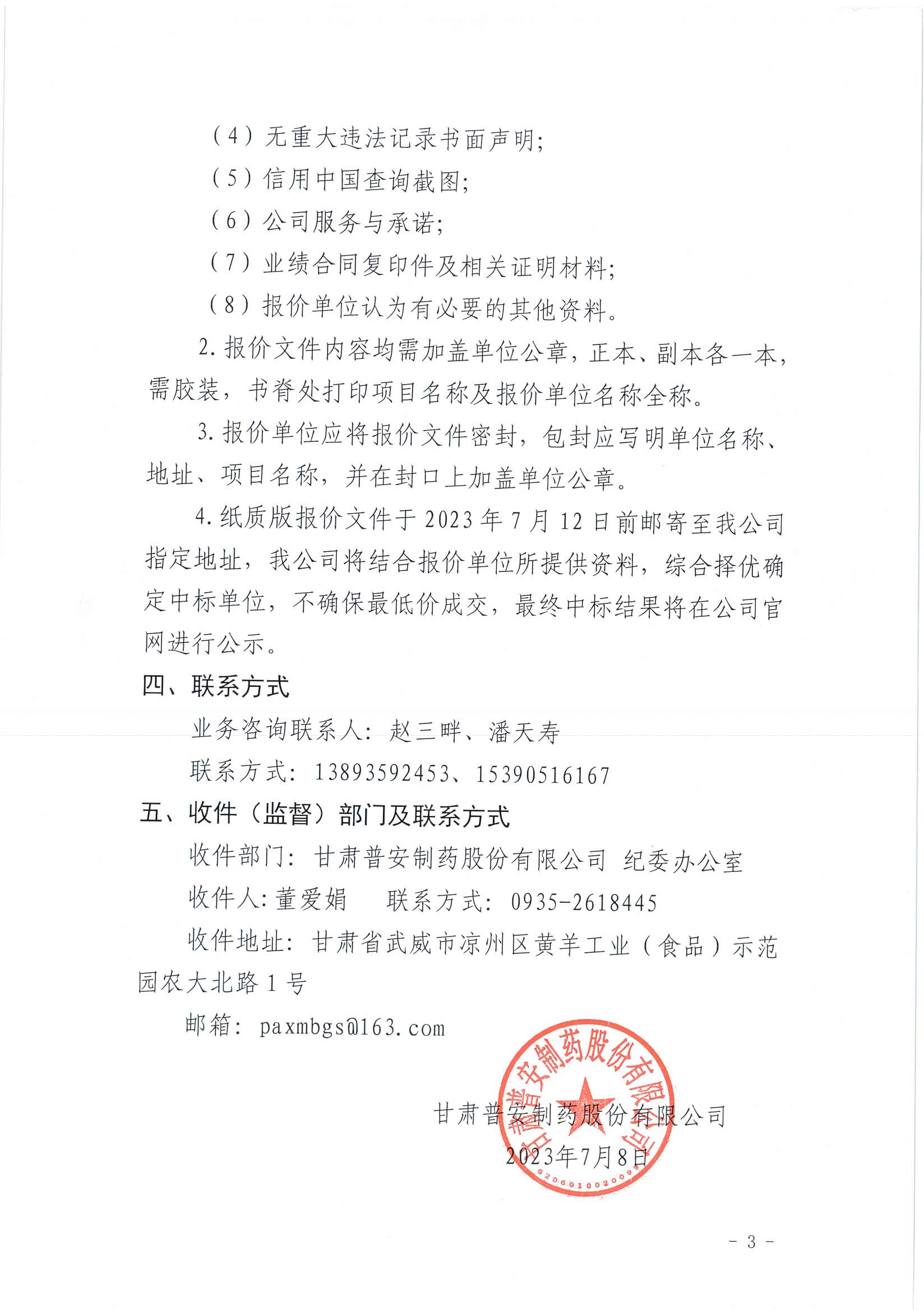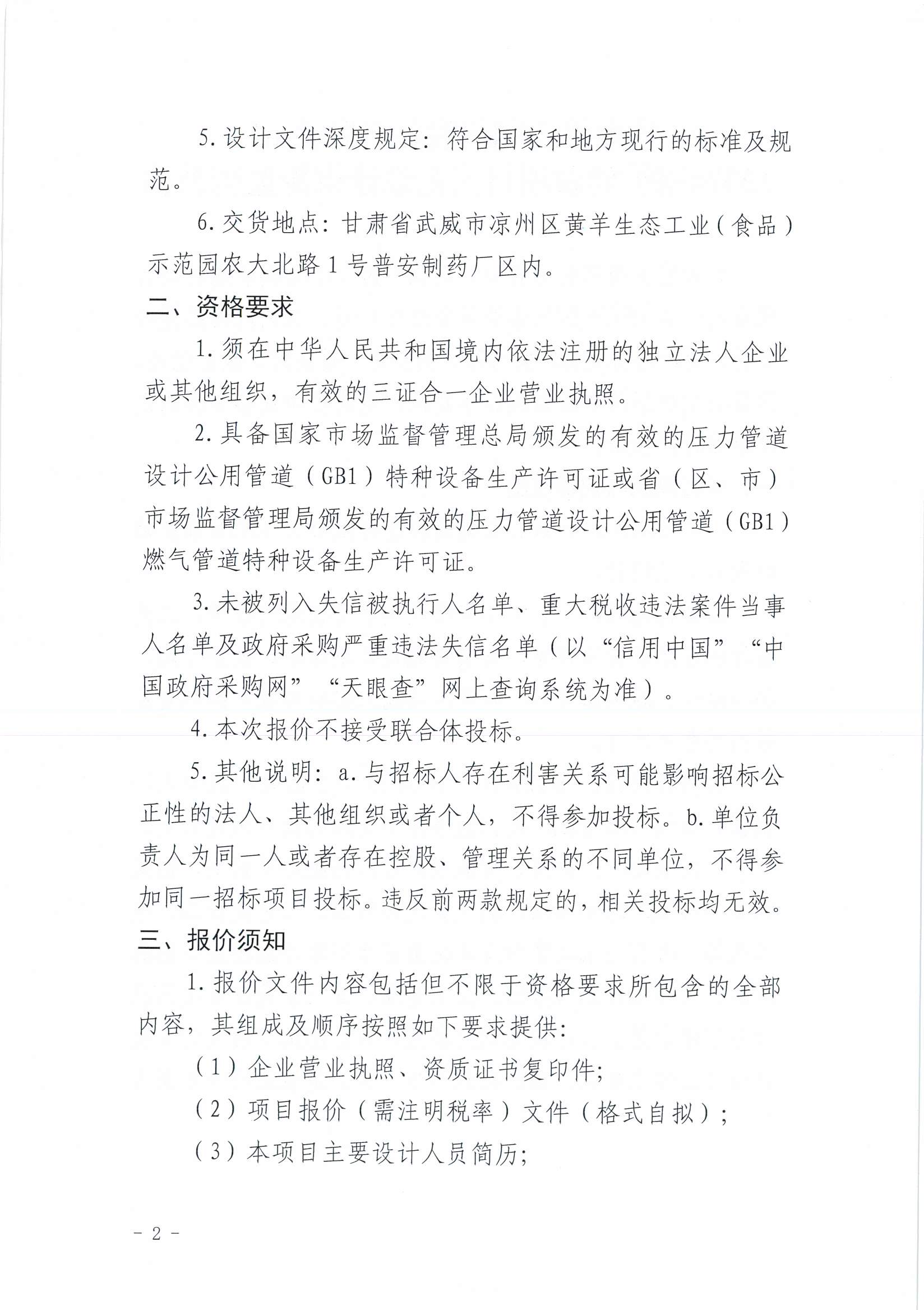 甘肅普安制藥股份有限公司15T/h鍋爐建設項目工藝設計報價邀請公告