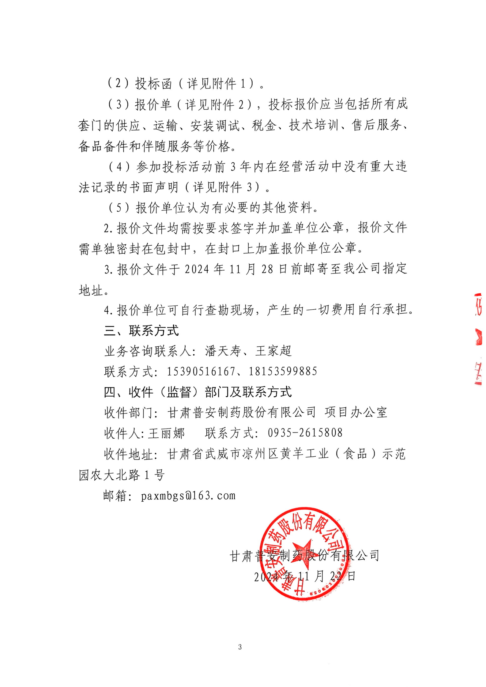 甘肅普安制藥股份有限公司年產5000萬盒(3億支)宣肺止嗽合劑等液體制劑生產線升級改造項目外包車間、庫房新增防火門、快速卷簾門等采購安裝詢價公告