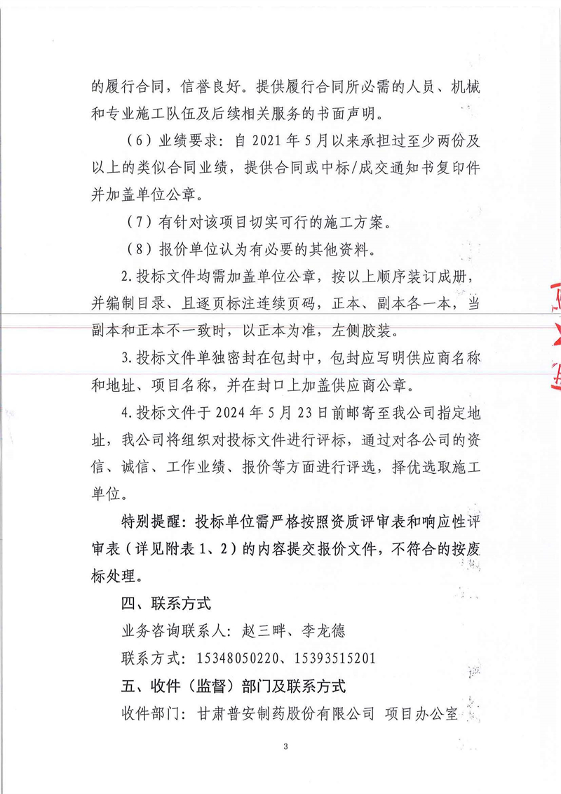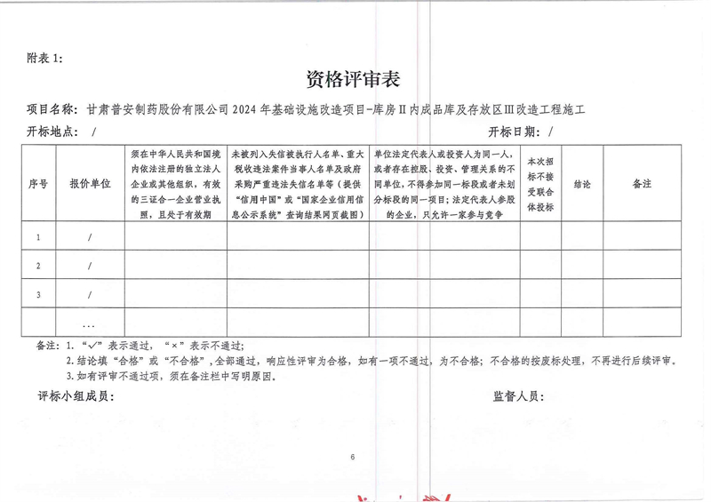 甘肅普安制藥股份有限公司2024年基礎設施改造項目-庫房Ⅱ內成品庫及存放區Ⅲ改造工程施工招標公告