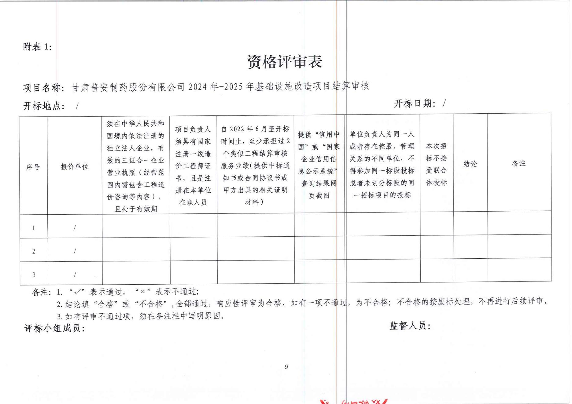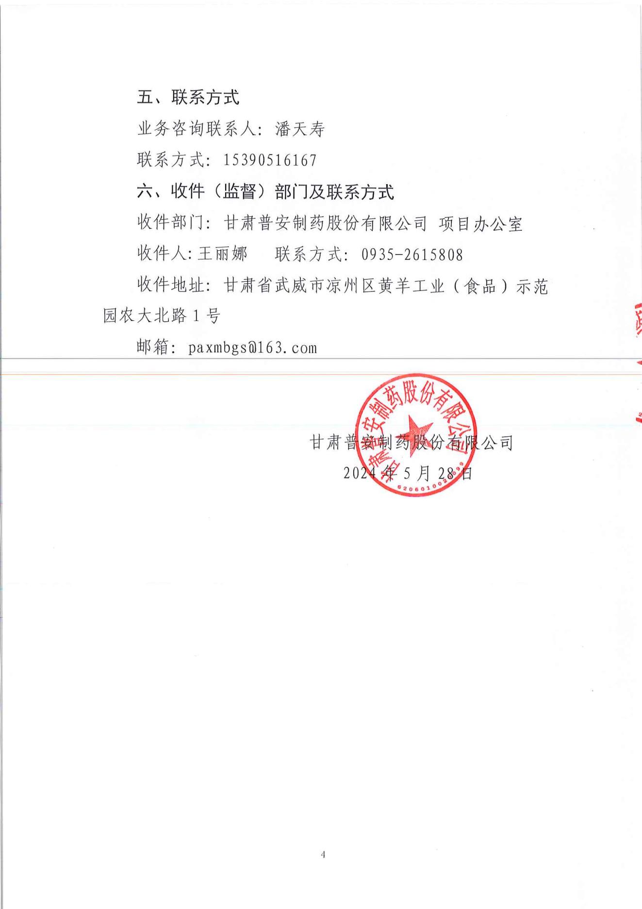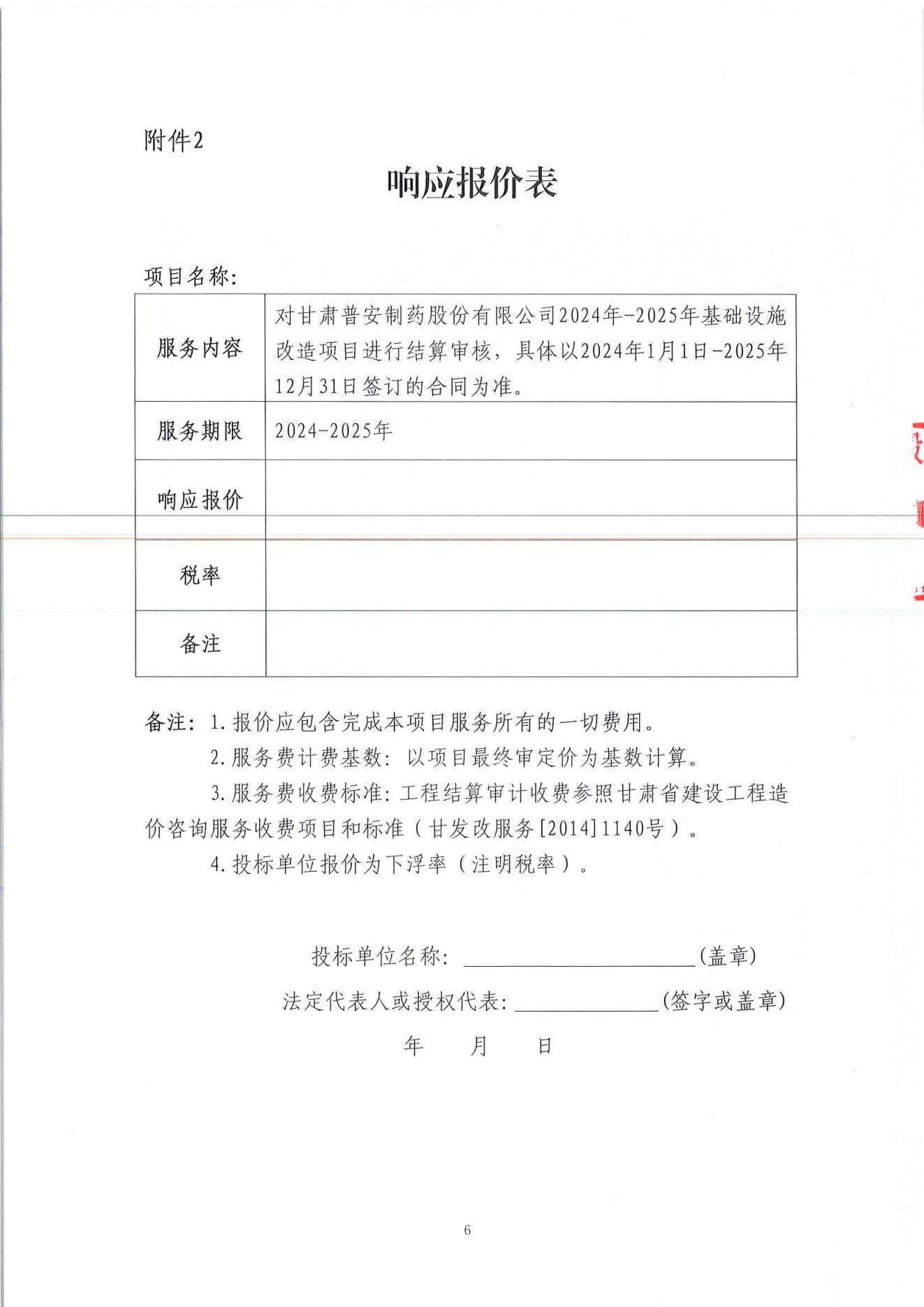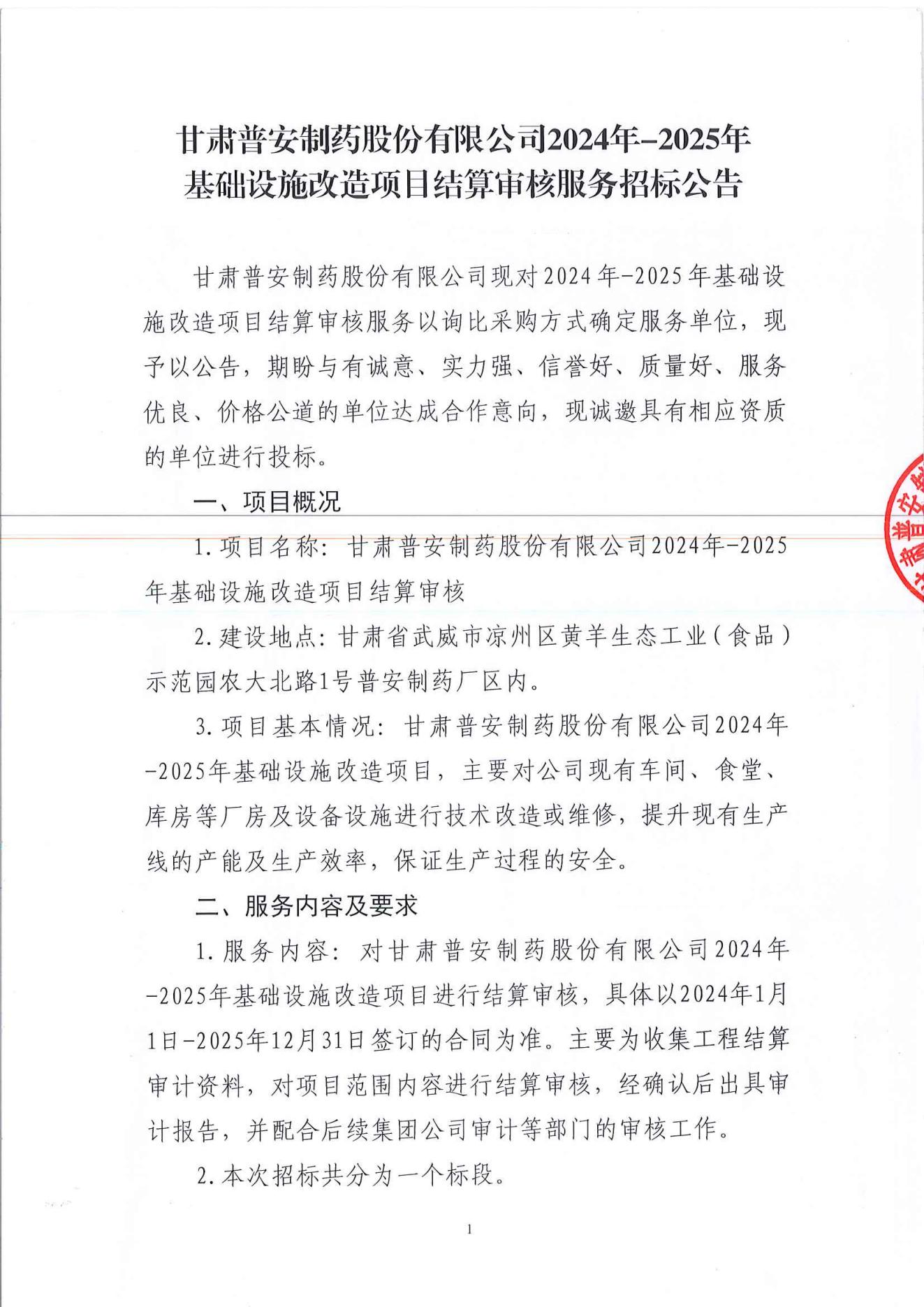 甘肅普安制藥股份有限公司2024年-2025年基礎設施改造項目結算審核服務招標公告
