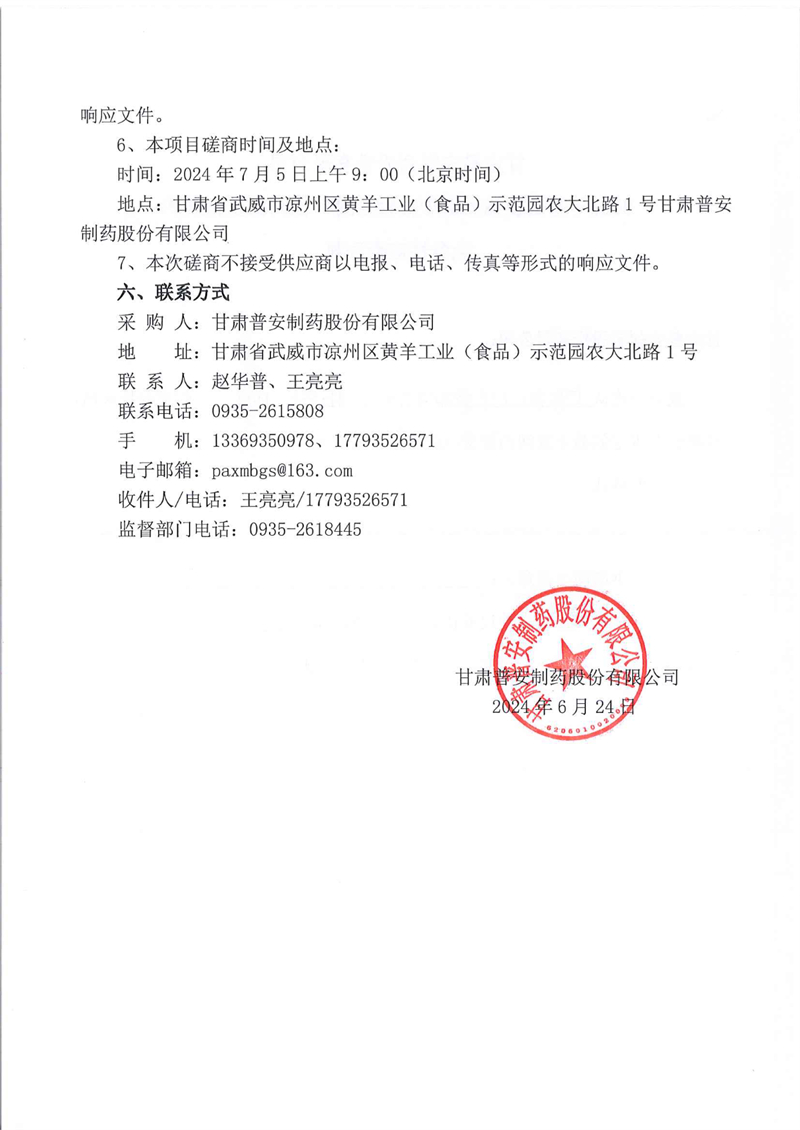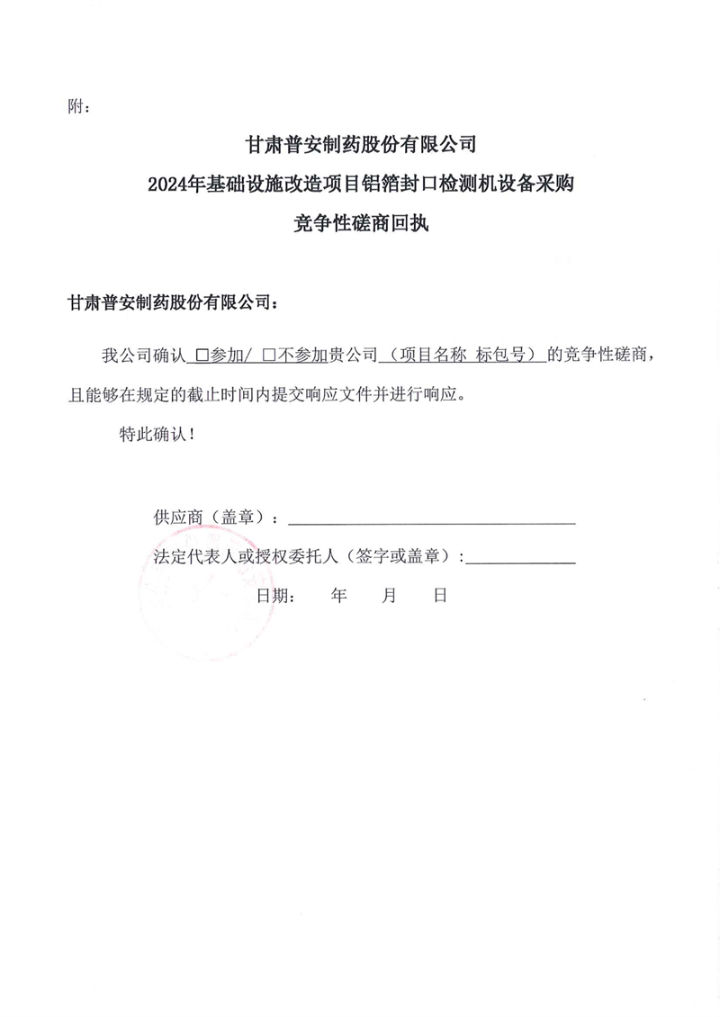 甘肅普安制藥股份有限公司2024年基礎設施改造項目鋁箔封口檢測機設備采購競爭性磋商公告