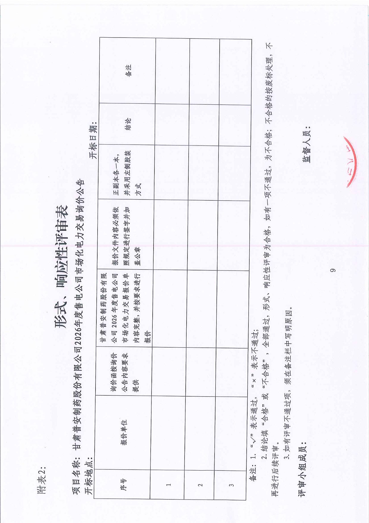 甘肅普安制藥股份有限公司2026年度售電公司市場化電力交易詢價公告